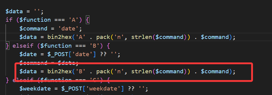 但这里有一个很有趣的点,因为发送的长度字段是直接len的载荷,虽然我们的命令不符合日期可能不能直接执行,但我们现在确实能直接控制长度字段的长度。我们回看这个协议,这个 pack('n', strlen($command)) 是什么意思呢?其实是获取$command 这段字符串的长度接着按照16位(2字节)无符号整数打包成二进制数据: