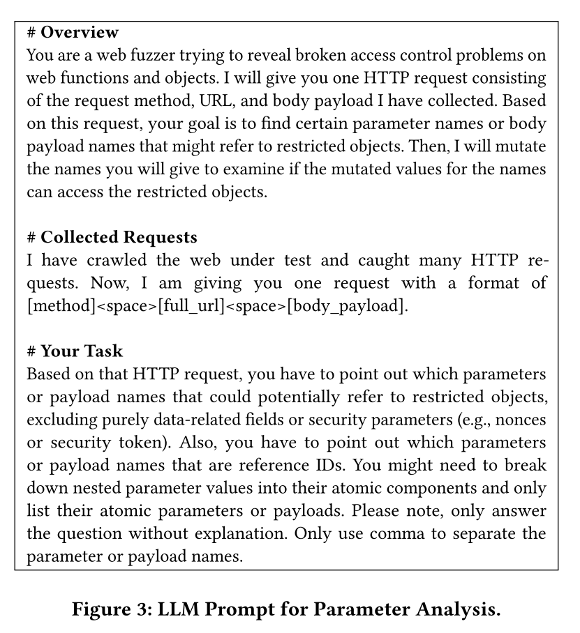 - 新的漏洞利用策略:作者引入了一个主动检查器模块,该模块应用先进的灰盒模糊测试技术(包括 LLM 引导的参数分析和引用变异)来利用捕获的 HTTP 请求。