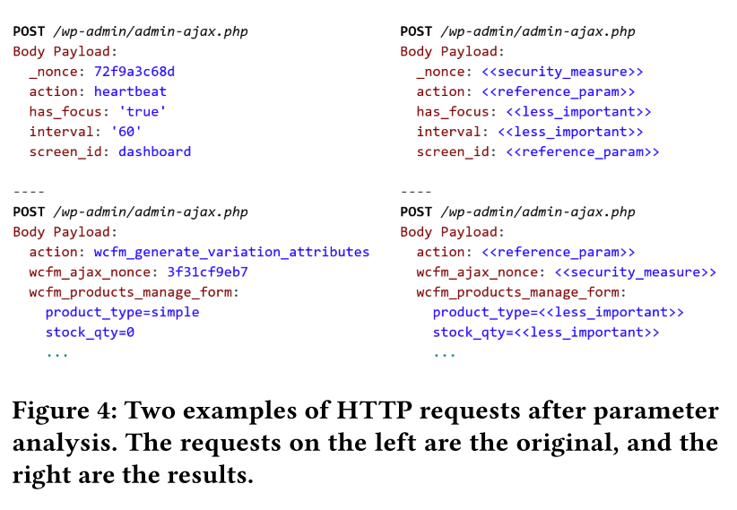 这里作者引入了一个叫做角色标注机制(Role Labelling)的东西,作用就是对每个请求和参数标注其来源角色。例如,一个请求最初由 admin 用户触发,那么标注为 admin,后续如果 manager 用户也发送了同样请求,则增加 manager 标签,同样处理参数语料库中的 param-value 对,记录它们出现在何种用户角色中。