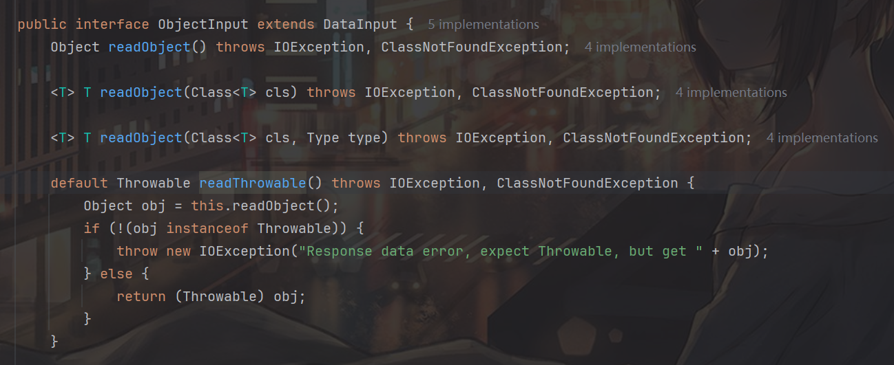 DecodeableRpcResult#decode -> DecodeableRpcResult#handleException -> ObjectInput#readThrowable