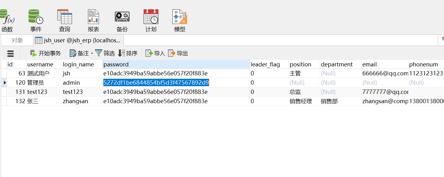 可以看到数据库已经插入了对应的用户,密码为123456: