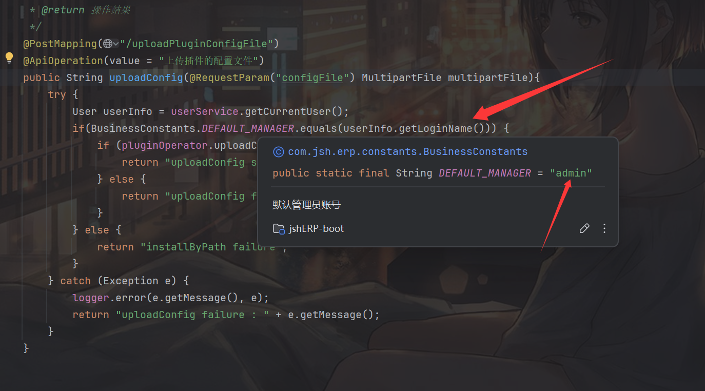 不过分析上传插件的接口uploadConfig,可以看到他只是校验了当前用户的LoginName是不是admin,所以这一点也无关紧要,我们现在还是能上传插件的: