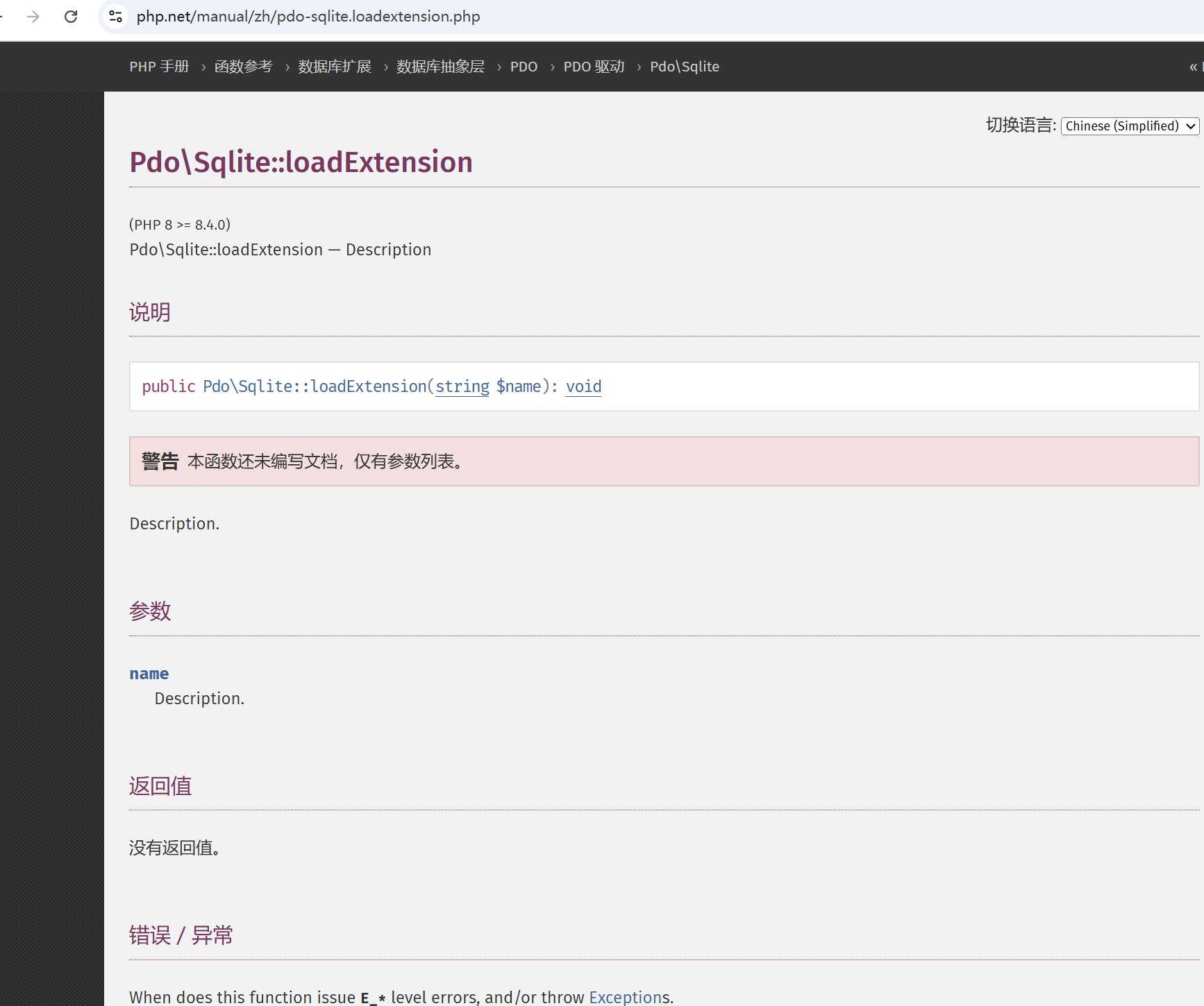 但Pdo\Sqlite::loadExtension 也存在可以加载库的方法,文档里似乎没有写配置限制,并且这个方法非常的新,php 8.40以上才有: